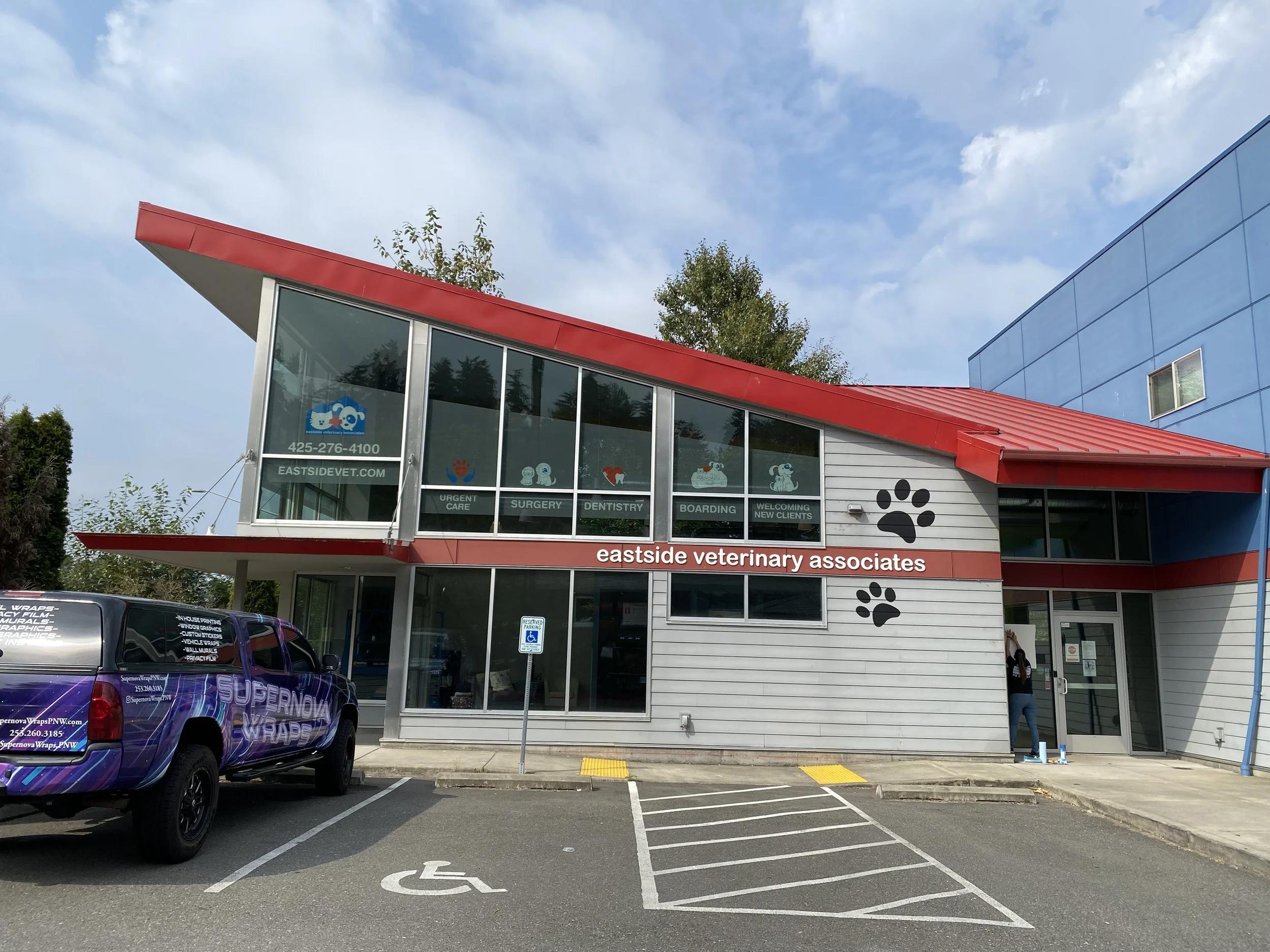 Printed and install interior window perf at Eastside veterinary in Redmond